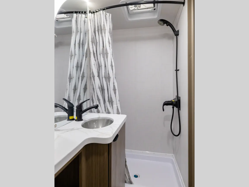 Sleeps 3 Length 16 ft Ext Width 7 ft 6 in Ext Height 10 ft 6 in Hitch Weight 385 lbs Dry Weight 2494 lbs Cargo Capacity 1391 lbs Fresh Water Capacity 41 gals Grey Water Capacity 30 gals Black Water Capacity 30 gals Furnace BTU 20000 btu Available Beds Custom King Refrigerator Type Extra Large Black Glass 12V Cooktop Burners 2 Number of Awnings 1 Water Heater Type On Demand AC BTU 13500 btu Awning Info Power w/Adjustable Legs & LED Light Strip Axle Count 1 Shower Type Walk-In Shower Electrical Service 30 amp -