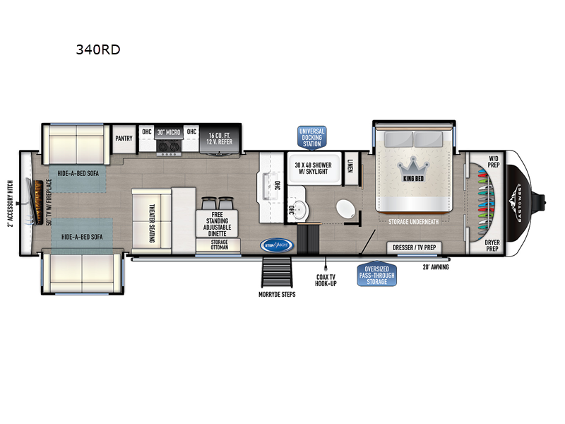 EAST TO WEST Tandara fifth wheel 340RD highlights: